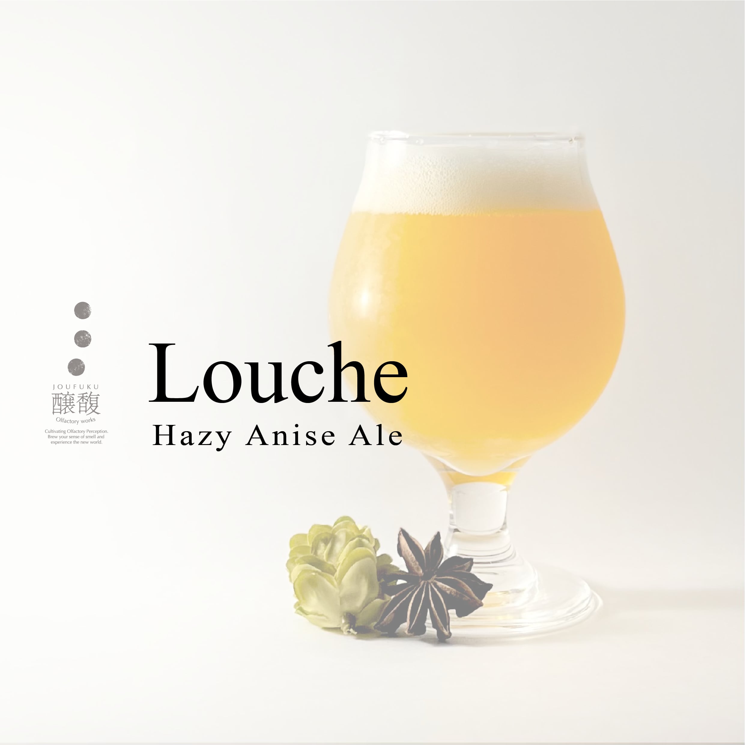 Hazy IPAに通常用いられるオーツ麦や小麦を敢えて使用せず、代わりにアニスとリコリスで柔らかな甘味やボディを付与しました。ホップはフルーティな現代的品種をドライホッピングに用い、そこにアニスなどのスパイスを合わせることで、ホップだけでは成しえないフルーツコンポートのような甘美な調和を目指しました。
