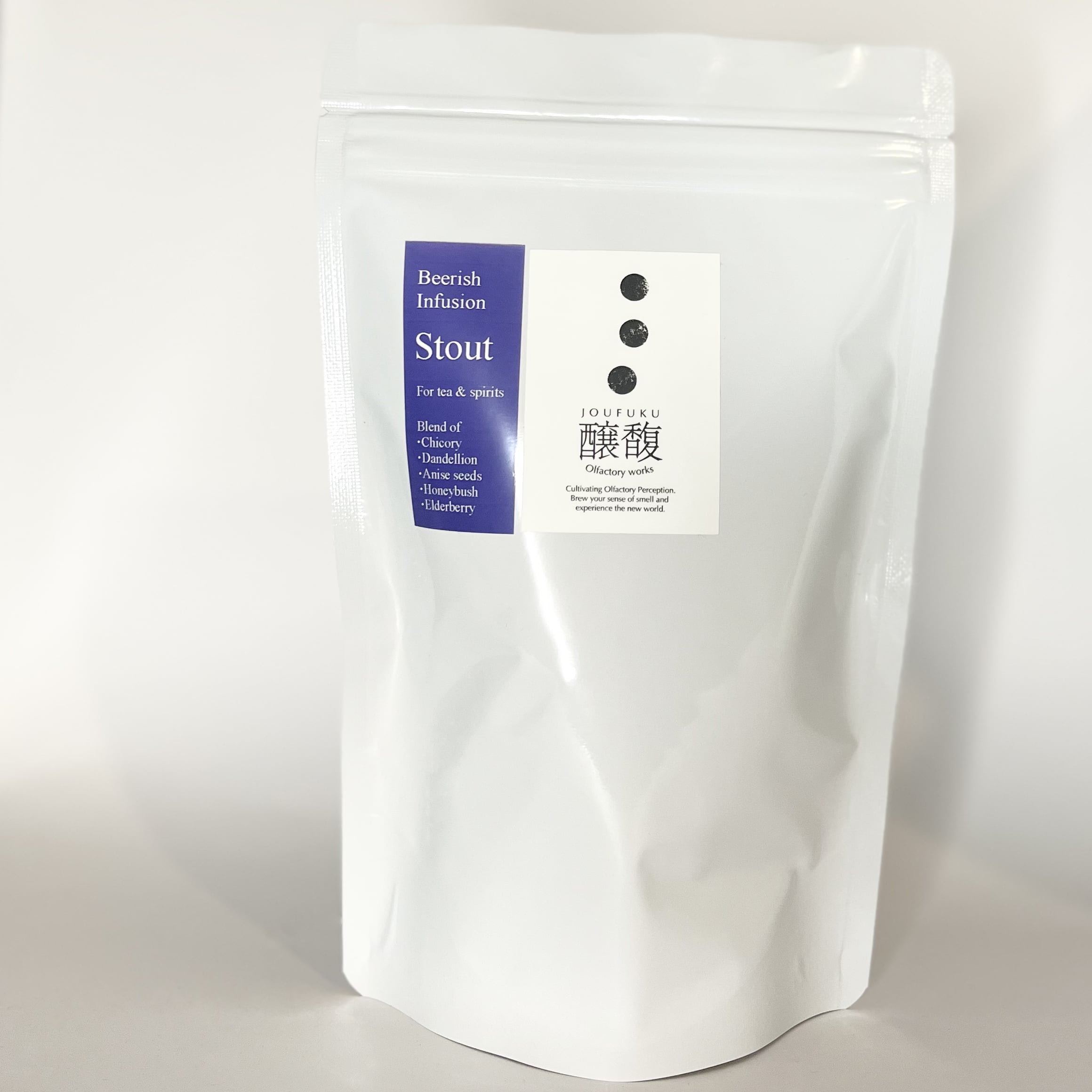 アイルランドの黒色ビール‘Stout’にインスパイアされたハーブティー。コーヒーやココアのような焙煎香とコク。ノンカフェイン。